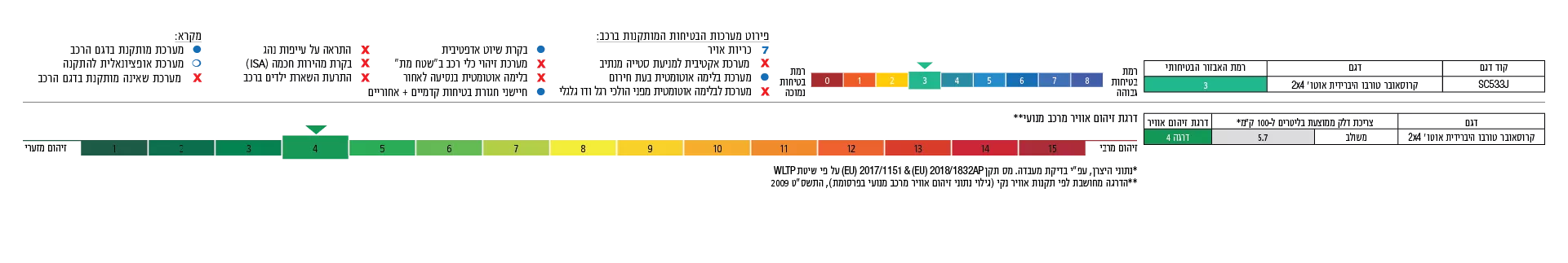 מחיר הרכב 139,824 ₪ כולל אגרת רישוי בסך 1,834 ₪ ומתייחס לקרוסאובר טורבו היברידי דגם אוטו' GLX ADAS לפי מחירון 02/22, 36 תשלומים חודשיים החל מ- 699 ₪, תשלום מקדמה 53,200 ₪, תשלום בסוף תקופה 69,912 ₪. סכומי ההחזר החודשיים מבוססים על פריים + 1.85%, ריבית אפקטיבית שנתית 3.75%. מתן ההלוואה בכפוף לאישור הגורם המממן, הסכומים עשויים להשתנות עם שינויים בריבית הפריים. החברה רשאית להפסיק את המבצע בכל עת. נתוני צריכת הדלק הם לפי בדיקות מעבדה. צריכת הדלק בפועל מושפעת מגורמים שונים, לרבות תנאי הדרך, תחזוקת הרכב ומאפייני הנהיגה, ועל כן יכולה להיות גבוהה ביחס לנתוני המעבדה. התמונה להמחשה בלבד. ט.ל.ח.