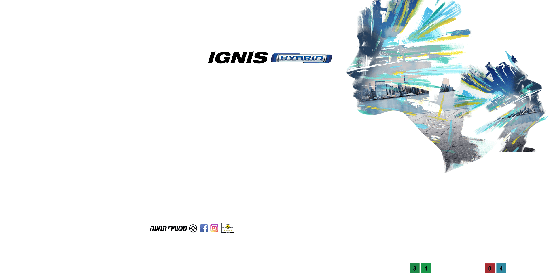 מחיר הרכב 104,236 ₪ כולל אגרת רישוי בסך 1,246 ₪ ומתייחס לאיגניס היברידי דגם אוטו' חד גווני לפי מחירון 02/22, 36 תשלומים חודשיים החל מ- 399 ₪, תשלום מקדמה 43,820 ₪, תשלום בסוף תקופה 52,118 ₪. סכומי ההחזר החודשיים מבוססים על פריים + 1.85%, ריבית אפקטיבית שנתית 3.78%. מתן ההלוואה בכפוף לאישור הגורם המממן, הסכומים עשויים להשתנות עם שינויים בריבית הפריים. החברה רשאית להפסיק את המבצע בכל עת. נתוני צריכת הדלק הם לפי בדיקות מעבדה. צריכת הדלק בפועל מושפעת מגורמים שונים, לרבות תנאי הדרך, תחזוקת הרכב ומאפייני הנהיגה, ועל כן יכולה להיות גבוהה ביחס לנתוני המעבדה. התמונה להמחשה בלבד. ט.ל.ח.